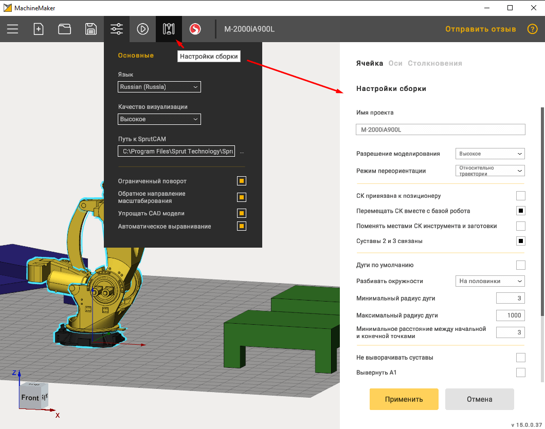 Приложение MachineMaker стало доступно только в SprutCAM 15. Это приложение для проектирования роботизированных ячеек. Можно загрузить 3D модель робота, добавить стационарные столы, поворотные позиционеры, рельсы, двух или трех осевые порталы. Затем сразу импортировать это в SprutCAM. У нас был вебинар, где мы подробно разобрали как с ним работать. Посмотреть можно на канале в youtube.