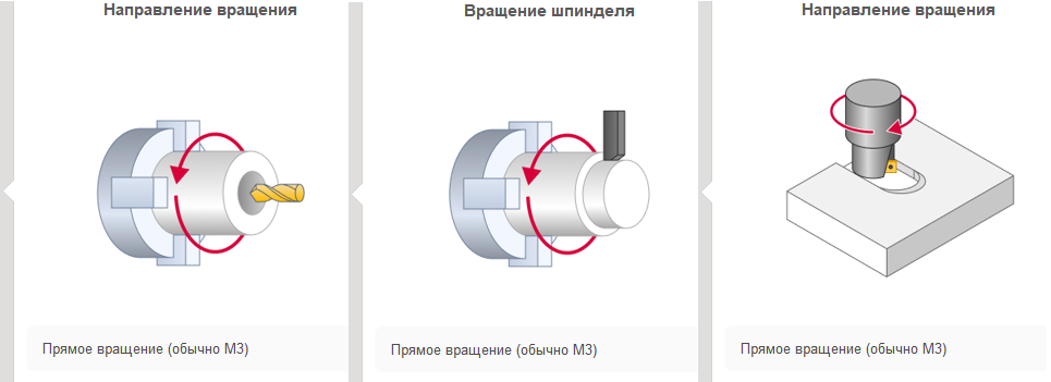 Для токарного инструмента этот режим автоматически определяет направление вращение шпинделя в зависимости от способа закрепления инструмента.