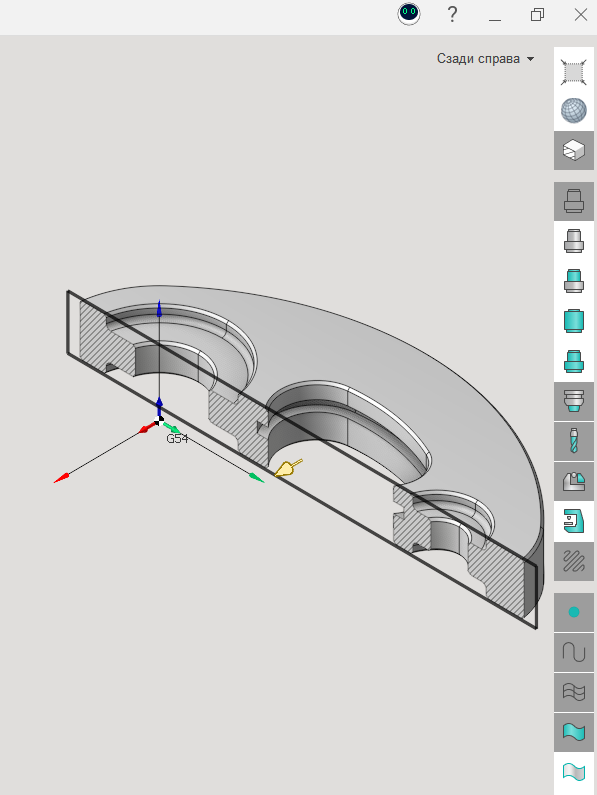 В этом обновлении мы добавили возможность включить Плоскость сечения для любой 3D модели. Например, чтобы посмотреть и настроить операцию для обработки поднутрений. В прошлых версиях спруткама подобная опция работает только для токарных видов.