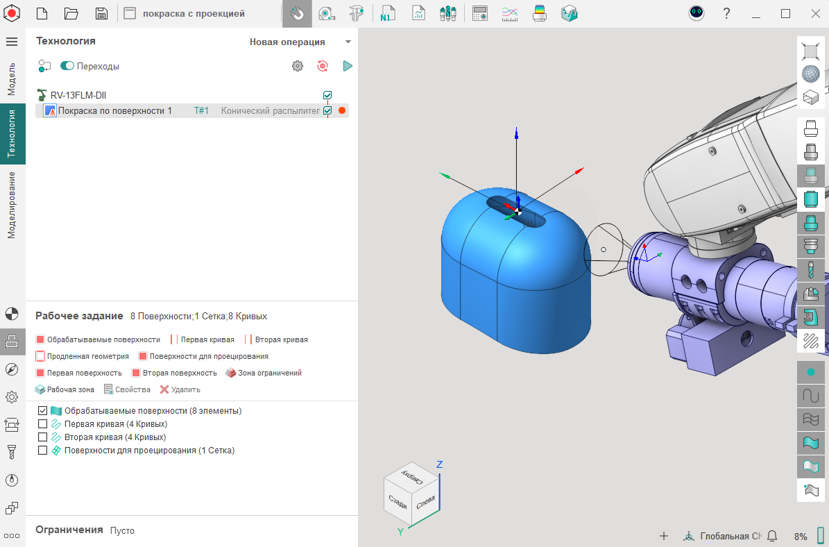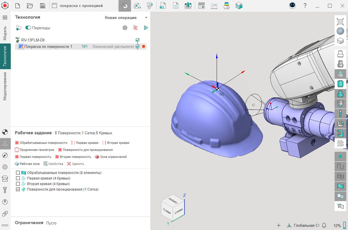Для нанесения покрытий часто нужно двигаться по нормали к детали. При этом точная ориентация не требуется, как при фрезеровании, а деталь может быть в формате STL.