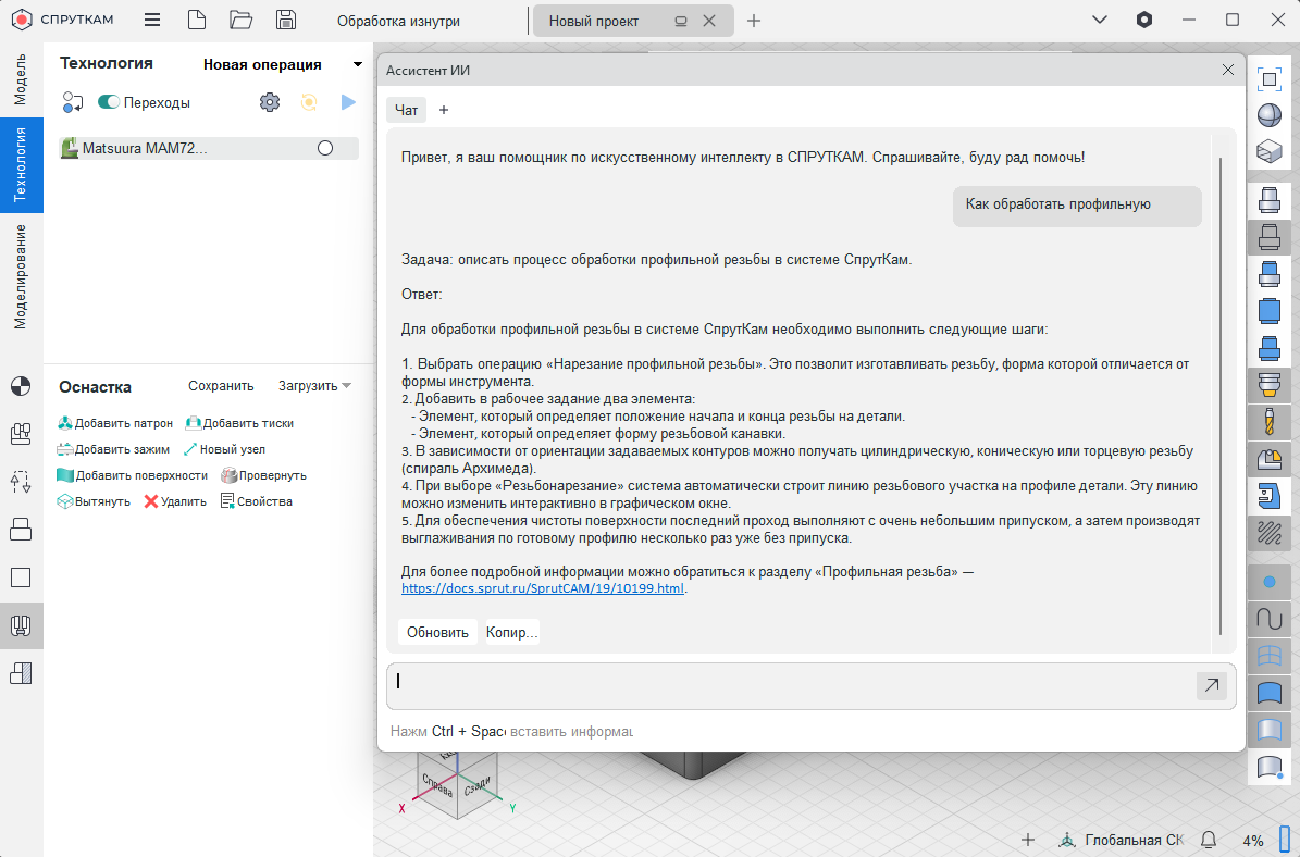 Обновили ИИ-ассистент для СПРУТКАМ на базе ЯндексGPT, теперь он ищет ответ по документации СПРУТКАМ и предлагает ссылки.
