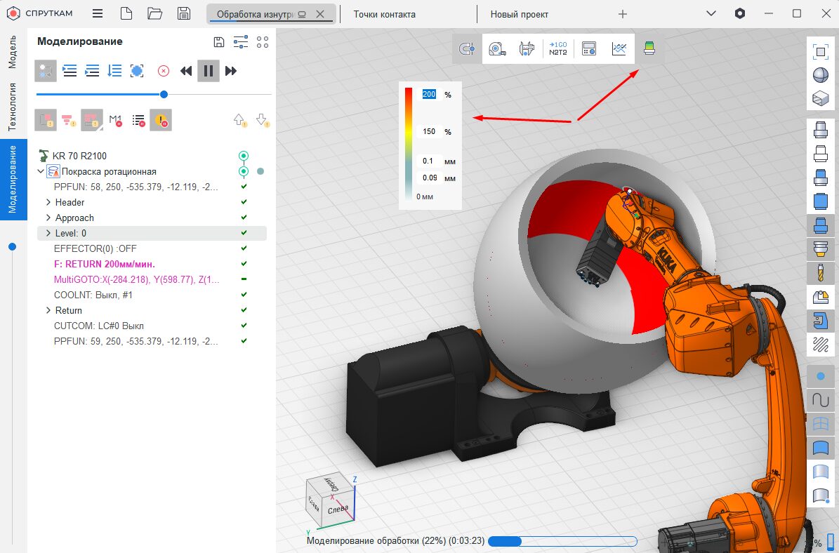 Еще одно изменение в этом релизе: теперь по умолчанию пользователь сразу видит только лишь окраску по цвету операции, без градиента толщины нанесенного слоя. Для оценки толщины слоя включите опцию «Сравнение результата обработки» и настройте цветовой градиент для сравнения с эталоном.