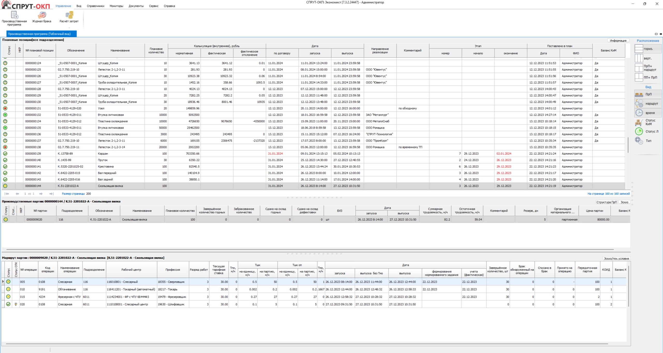 - Расчёт калькуляций заказов в различных вариантах;