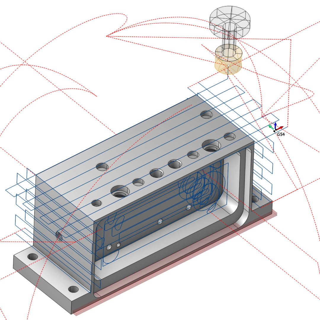 СПРУТКАМ учитывает ограничения станка при расчете траектории Нет необходимости в постпроцессировании и моделировании для отслеживания столкновений.